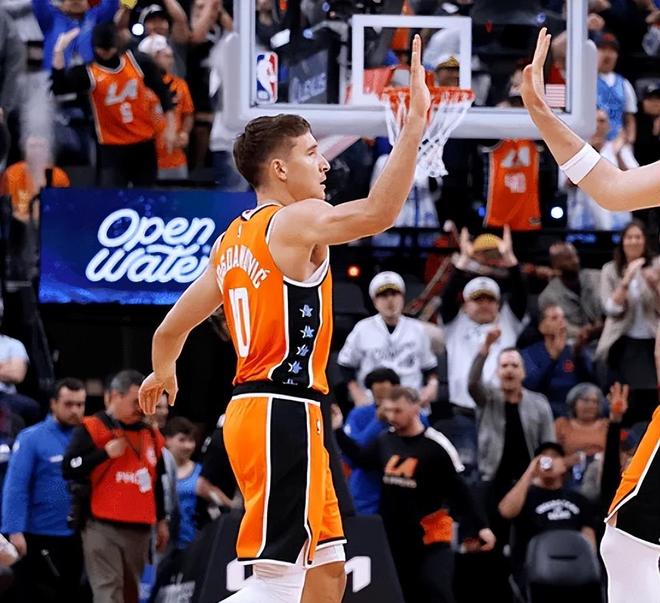 但现在他对于两个球员的运用还是不够好。一个是博格丹在这场比赛好不容易打出好的表现了,这段时间的状态也在回暖,可惜刚上场几分钟正负值+8的情况下被泰伦卢摁在替补,落后18分才重新上场,这对他就非常折磨了。现在博格丹证明了自己的得分效率,外加他在进攻端的串联能力还不错,打替补控卫还是不错的。特别是现在哈登的体能问题,博格丹可以尽可能化解哈登的压力,这对于球队下半段的进程会起到关键作用。